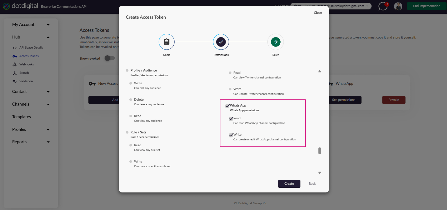 In order to grant access to call the WhatsApp channel management API you will need to ensure your access token has the correct permissions. To do this do the following: